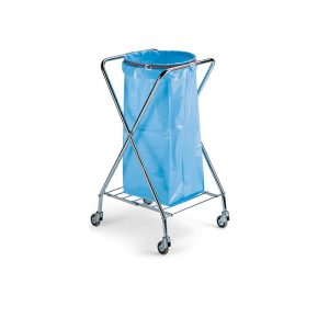 CHARIOT "X"CROME SANS COUVERTURE. Chariot X chromé avec support de sac rond, roues élastiques et pirouetteuses ø 80 mm -